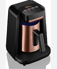 Experience authentic Turkish coffee with the ARZUM Okka Rich Spin, combining elegant black and gold design with advanced brewing technology for a perfect cup every time. This machine spins your coffee grounds to unleash full flavor and aroma, delivering rich, thick coffee with traditional consistency effortlessly.