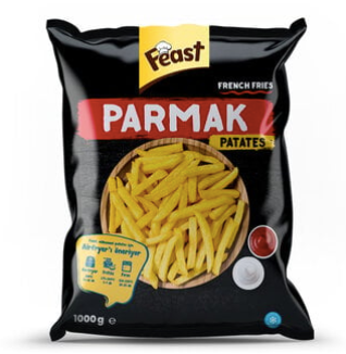 FEAST French Fries PARMAK PATATES 1kg offers high-quality, uniformly cut potato fingers ideal for frying or baking. Made from selected potatoes, they deliver consistent crispiness and flavor, perfect for restaurants or home use. The 1kg pack ensures convenience and portion control for any meal preparation.