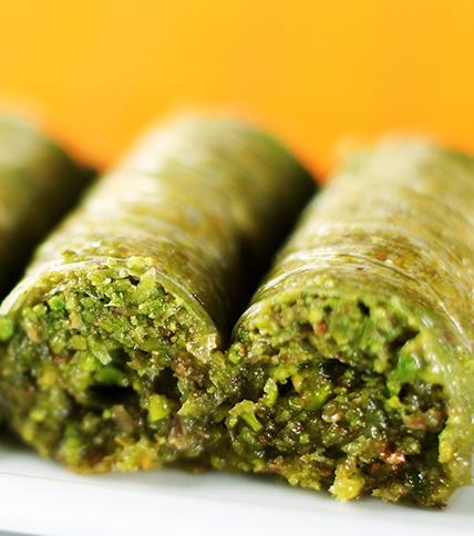 GULLUOGLU Pistachio Wrap Baklava FISTIKLI SARMA DURUM 400g offers a premium taste of traditional Turkish dessert. Made with layers of thin, flaky pastry filled with rich pistachios, this 400g package delivers a perfect balance of sweetness and crunch. Ideal for sharing or gifting, it showcases authentic craftsmanship and high-quality ingredients for an exquisite indulgence.