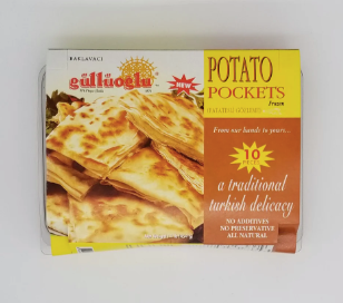 GULLUOGLU Potato Pockets PATATESLI GOZLEME 500g includes 10 small, traditionally crafted gozleme filled with seasoned potato. These convenient pockets offer a flavorful and authentic Turkish snack or meal option, ready to heat and enjoy. Ideal for quick, satisfying bites with a balance of soft pastry and savory potato filling.