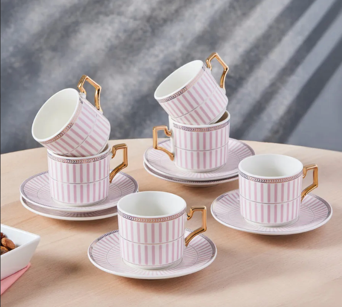 KARACA Coffee Cup Set for 6 JOLLY 6 KISILIK KAHVE FINCANI SETI Pink Thin
