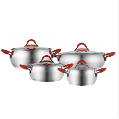 KARACA OYSTER 8 PARCA CELIK TENCERE SETI KIRMIZI Red 8pcs Steel Pan Set