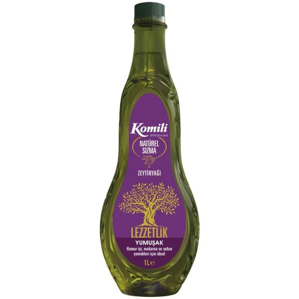 KOMILI YUMUSAK NATUREL SIZMAZEYTINYAGI Mild Extra Virgin Olive Oil 1lt offers a delicate, smooth flavor ideal for enhancing salads, dressings, and light cooking. Produced from carefully selected olives, this 1-liter bottle ensures high-quality, natural, and unrefined oil rich in antioxidants and healthy fats, supporting heart health and overall wellness.