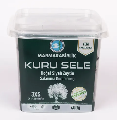 MARMARABIRLIK 3XS Black Olives KURU SELE SIYAH ZEYTIN are premium dried black olives known for their rich, intense flavor and firm texture. Carefully selected and naturally dried, these olives retain their authentic taste, making them ideal for culinary use, snacking, or garnishing dishes. Their small size and concentrated flavor enhance salads, appetizers, and Mediterranean recipes with a classic, robust olive taste.