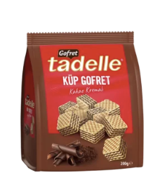 TADELLE Cube Wafer KUP GOFRET 200g, çıtır gofret katmanları ve yoğun kakaolu kremasıyla dengeli ve tatmin edici bir atıştırmalık sunar. Küp formu, hareket halindeyken veya paylaşırken pratiklik sağlar. Kaliteli ve lezzetli bir tatlı arayanlar için ideal bir seçenektir.