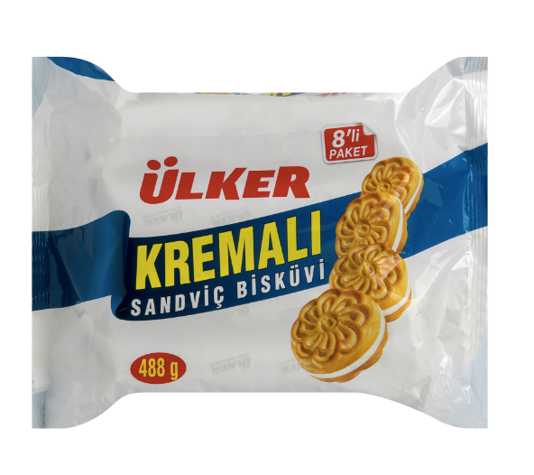 ULKER KREMALI SANDVIC BISKUVI 8LI Cream Sandwich Cookie 8 pack 61g x 8