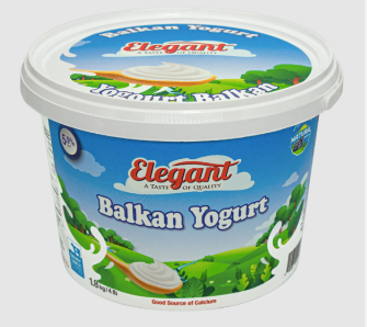 ELEGANT Balkan Usulü Yoğurt, %5.9 yağ oranı ve zengin kremamsı dokusuyla geleneksel tariflere uygun olarak hazırlanmıştır. 1.8 kg’lık paket, benzersiz Balkan lezzetini sunar ve hem yemeklerde hem de doğrudan tüketim için idealdir.
