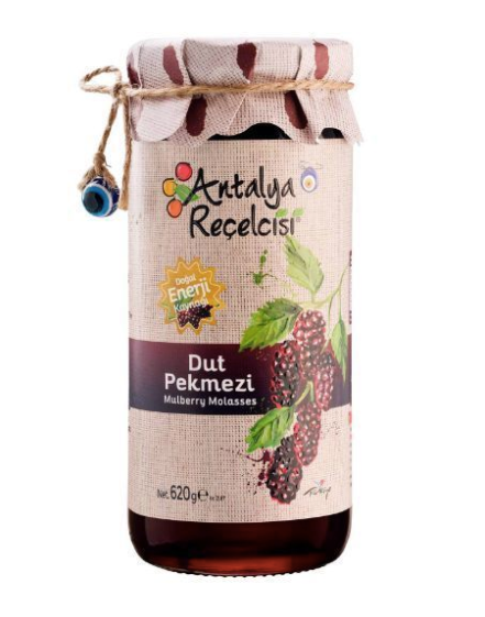 ANTALYA RECELCISI DUT PEKMEZI Mulberry Molasses 620g, olgun dutlardan elde edilen zengin ve doğal tatlı bir lezzet sunar. Bu geleneksel Türk pekmezi, tatlılara, içeceklere veya marine soslarına derin ve meyvemsi bir tat katmak için idealdir. Yoğun kıvamı ve konsantre aroması ile hem yemeklerde hem sağlık amaçlı kullanımlarda doğal enerji ve faydalı besinler sağlar.