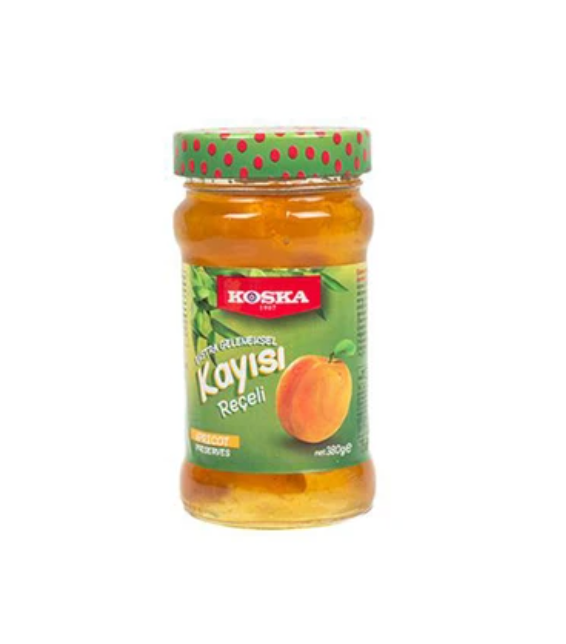KOSKA KAYISI RECELI Apricot Jam 380g delivers the authentic taste of ripe apricots preserved in a balanced sweetness. Carefully crafted to maintain the natural aroma and texture of apricot, this jam is perfect for spreading on bread, enhancing desserts, or adding a fruity touch to your recipes. Its 380g size provides a convenient portion for daily use, ensuring freshness with every jar.