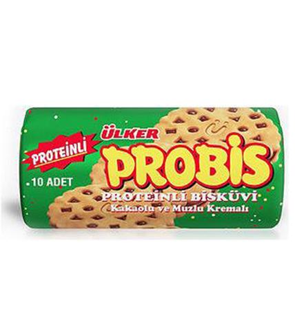 ULKER PROBIS PROTEINLI BISKUVI Kakao ve Muzlu Protein Sandviç Bisküvi 10'lu Paket